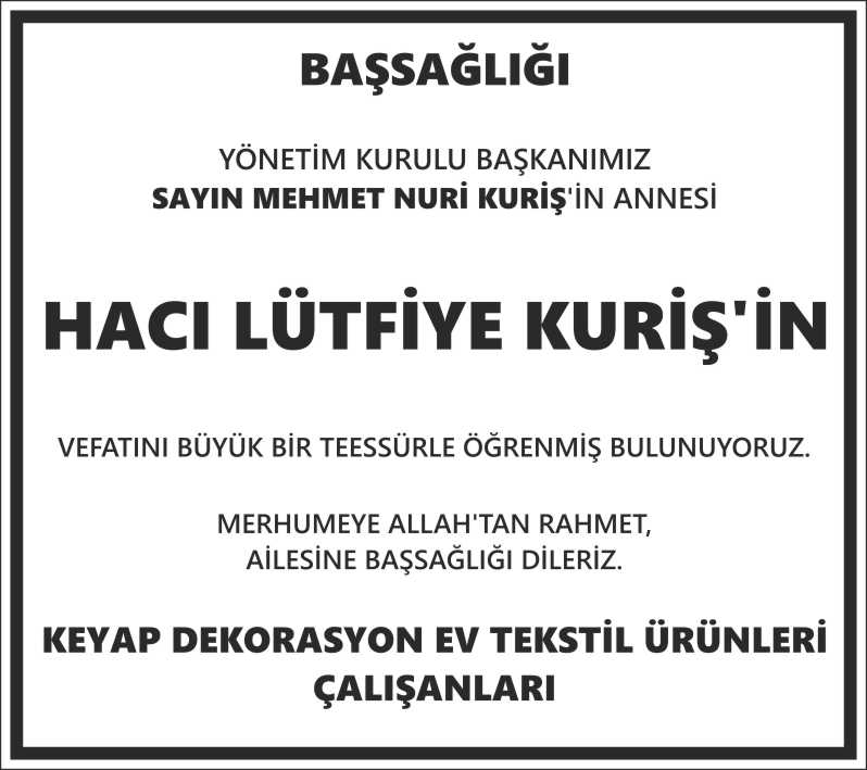 Örnek metin: “Yönetim Kurulu Başkanımızın değerli babasının vefatını üzüntü ile öğrenmiş bulunmaktayız. Merhuma Allah’tan rahmet, ailesine ve yakınlarına başsağlığı dileriz.”